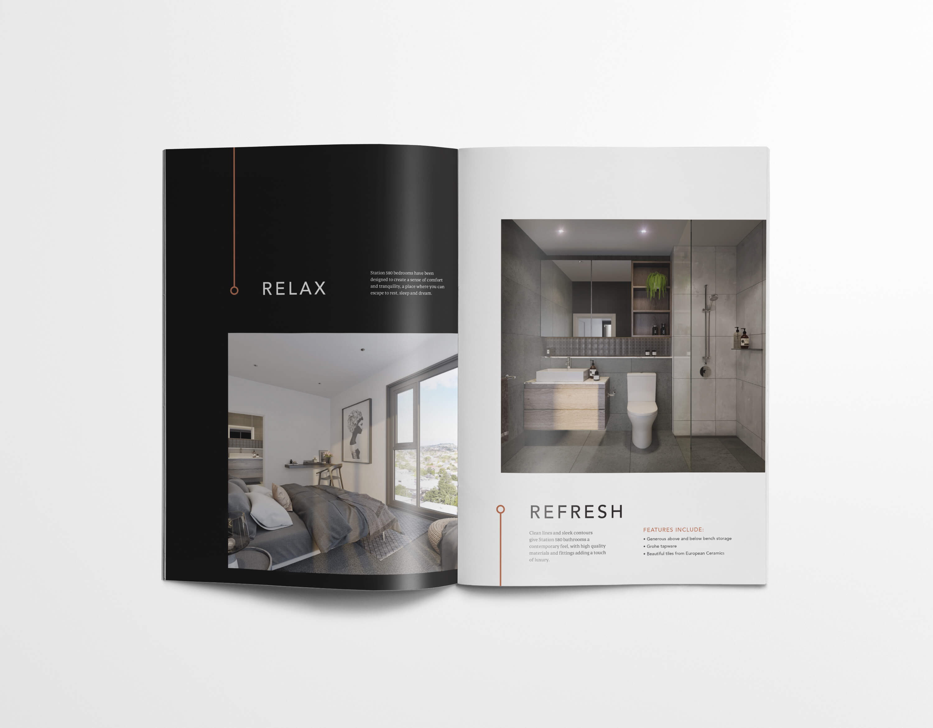 Martin Kells Developments approached Urlich Studio to create brand identity, website, brochure, interior finishes and marketing communications for a new apartment development in the hip inner city suburb of Kingsland, Auckland. Station 580 blends high-end finishes with chick inner city living. A mix of one, two and three bedroom apartments. The brand and identity system references city transportation networks. This coincides with the location of Station 580 as Kingsland Train Station is a stone throw away.